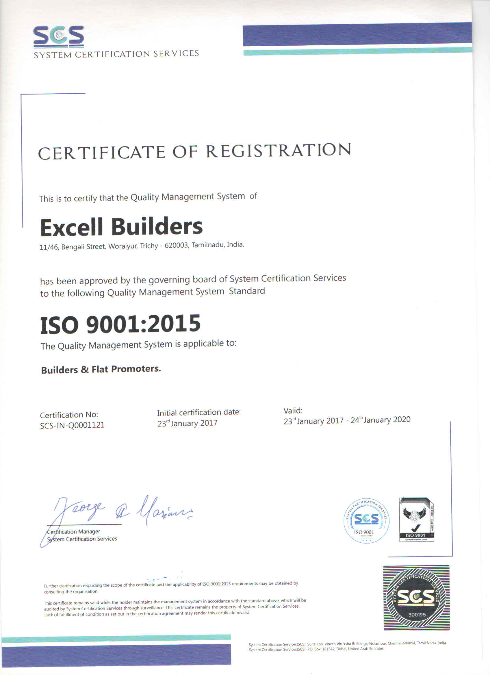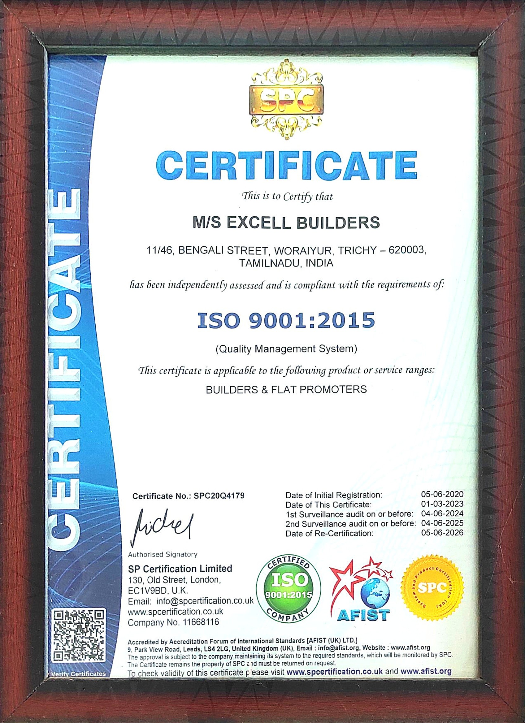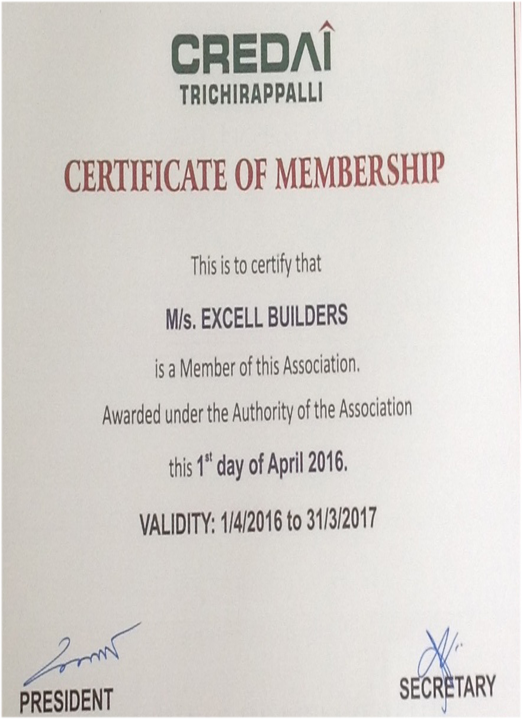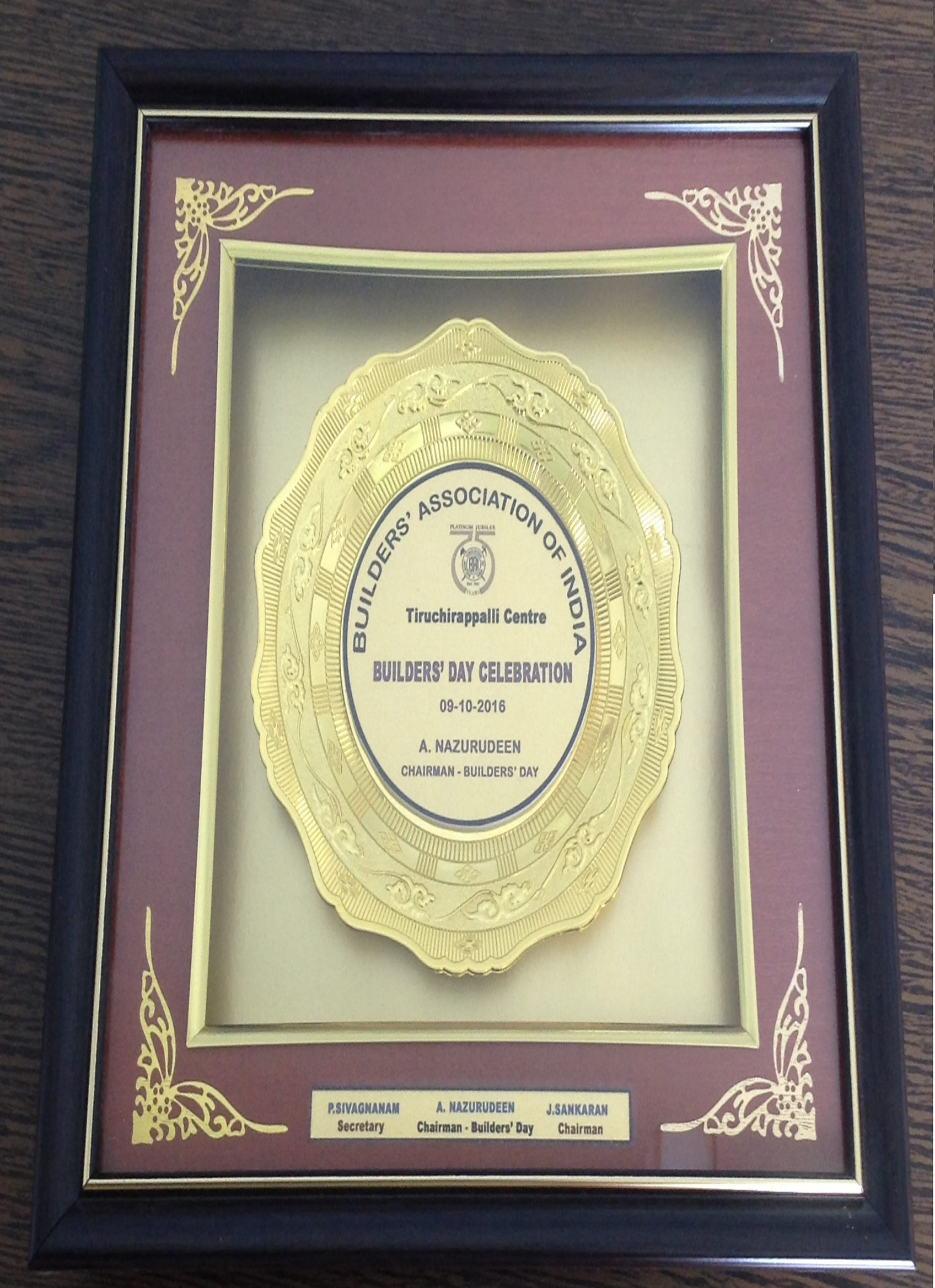 Awarded with "The Best Builder" in the year 2015 by Lions Club, Srirangam