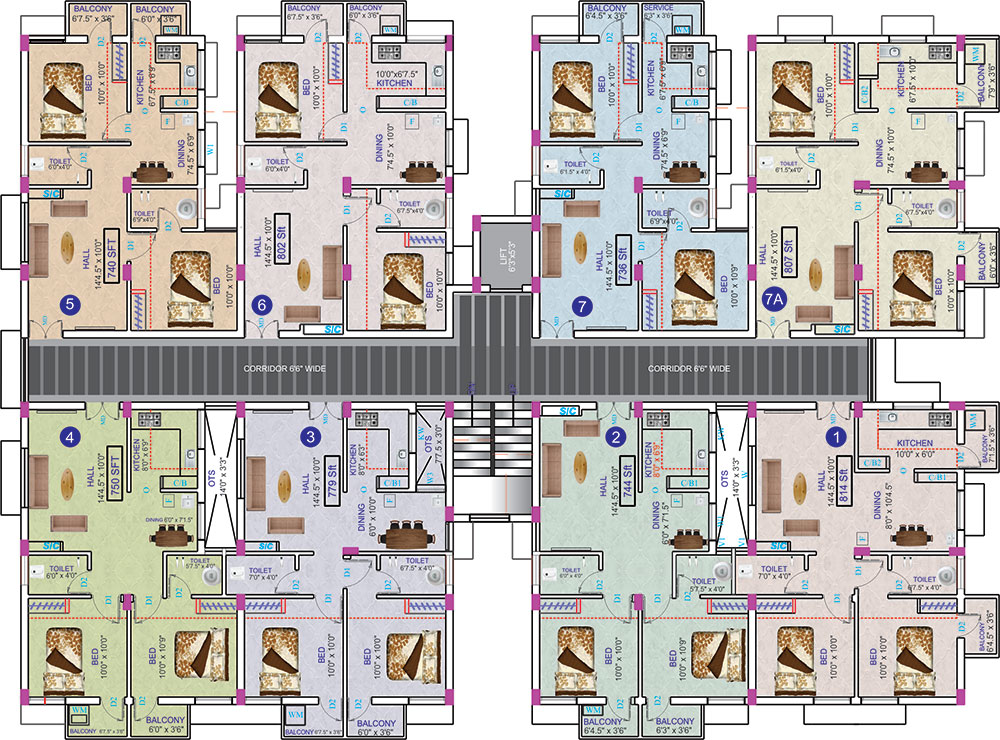 Flooring | 2’ x 2’ Vetrified floor tiles Toilet- Glaze ceramic tiles of reputed brand dado up to door height. Antiskid ceramic tiles for flooring. |