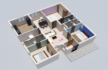 Flooring | Double Charged Vitrified floor tiles, Toilet-Glaze ceramic tiles of reputed brand dado up to door height Anti-Skid ceramic tiles for flooring. |
