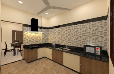 Kitchen | Black Granite platform with Sink, Glaze ceramic tiles dado up to 2 height above platform. |